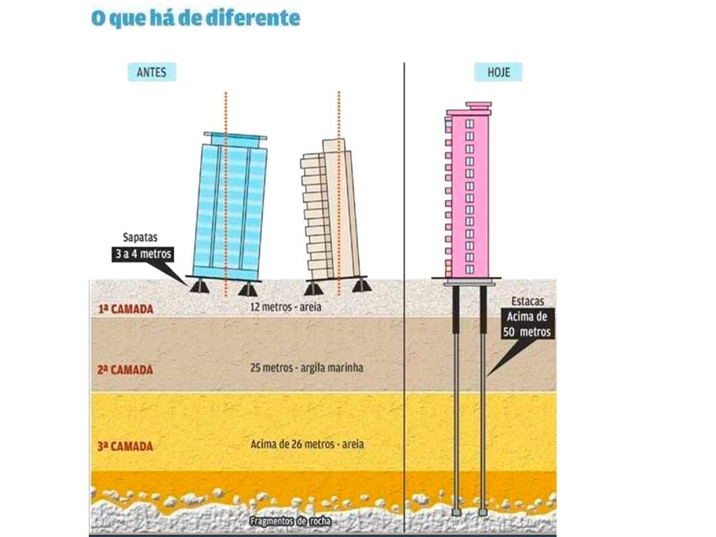 Em Santos, muitos prédios foram construídos sobre solos suscetíveis a recalques, o que leva à inclinação progressiva de edificações. O laudo tem como objetivos: