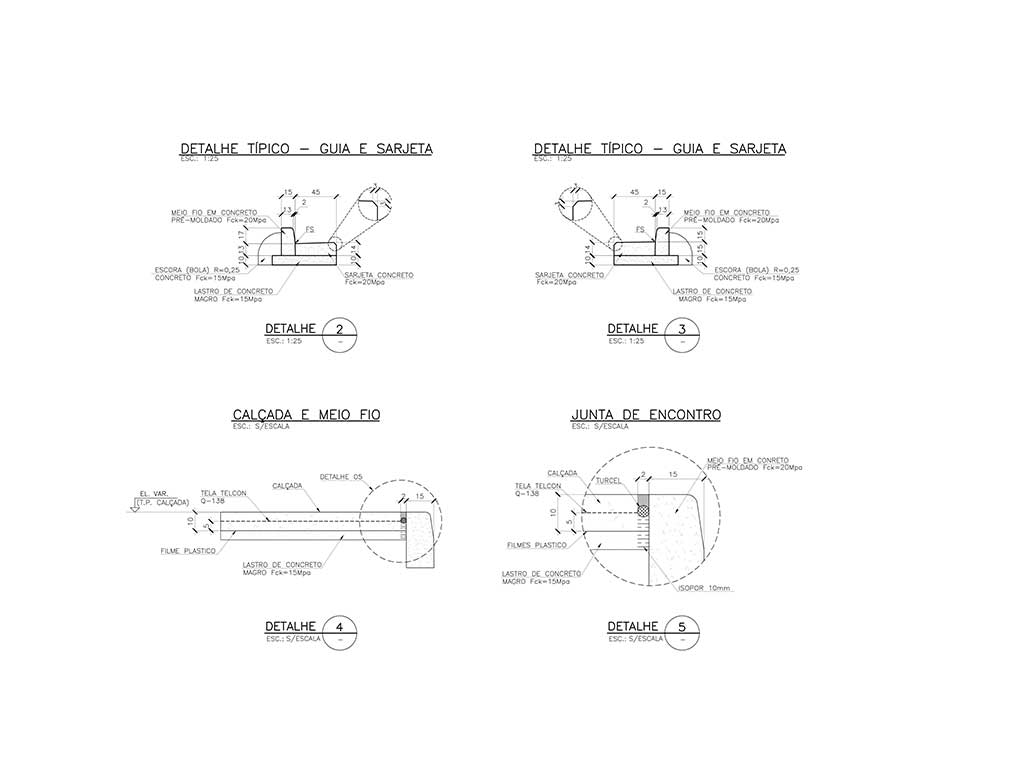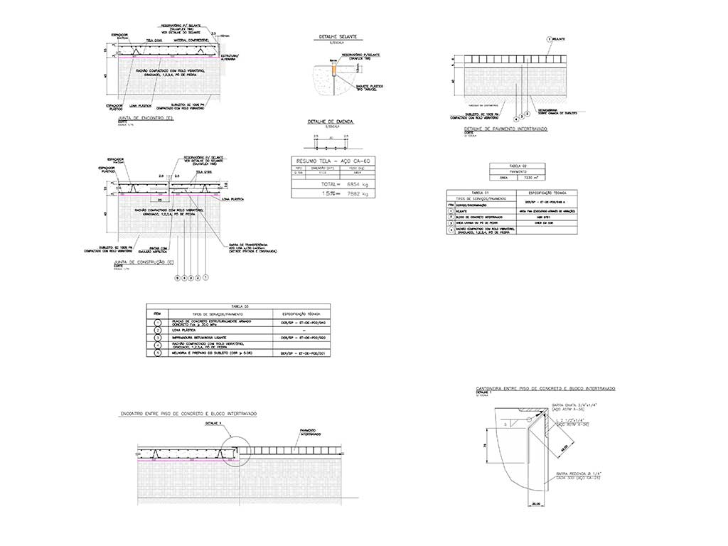 Com materiais e espessuras definidas segundo estudos de carga e solo.